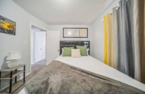 Looking for a cozy and comfortable place to call your home away from home? Look no further! Our two bedroom retreat is the perfect spot for your next vacation. Each bedroom features a comfortable queen-sized bed and a smart TV for your entertainment. The kitchen may be small, but it is well-stocked with all the necessities for cooking and food prep. Enjoy a quick meal at the bistro table with seating for two. Need to do some laundry? No problem – our laundry room comes equipped with a washer and dryer for your convenience. Step outside into the back yard and unwind on the outdoor seating area or gather around the small fire pit for a relaxing evening. Our quiet neighborhood is just a short distance from great restaurants and shops, making it the perfect location for your stay. Come experience the comfort and convenience of our charming retreat!