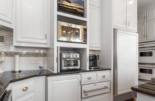 The gourmet kitchen has everything you would need to prepare your favorite meals. it features Viking appliances, double ovens, gas cooktop with griddle and warming drawer, oversized refrigerator. For entertaining we also have a mini beverage refrigerator and wine refrigerator.