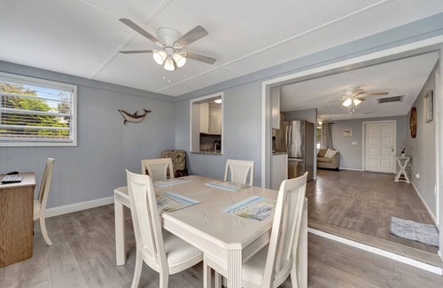 The home has been fully renovated and equipped with modern amenities. An open concept, luxury vinyl plank flooring. The living room has comfortable furniture with plenty of room for your whole group to lounge. It features a huge 65' smart TV connected with tons of free TV shows and movies plus you can connect to your favorite services as well.