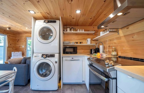 Security Cameras & Sound Devices: There is a security camera outside the chalet, monitoring the parking area. It does not point toward the spa or private spaces. A sound device is also in place to ensure noise levels remain respectful to the neighbors; it does not record conversations.
