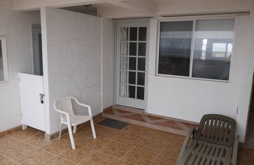This is a cozy two bedroom, 1 bath with ocean view patio “hotel suite” sitting on the first floor of a 5 story house located in the oceanfront community of San Antonio del Mar.