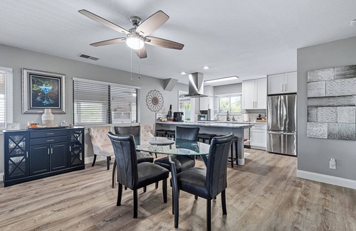 Welcome to your perfect beachside getaway! This spacious and thoughtfully designed 4-bedroom, 3-bathroom home offers everything you need for a relaxing extended stay just steps from the sand. With a 30-day minimum stay, it's ideal for snowbirds, remote workers, or families looking to truly unwind near the coast.