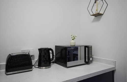 The fully equipped, spacious kitchen and laundry area provide all the conveniences needed for longer stays. There are two large double bedrooms and one generous king-size bedroom, ensuring plenty of room for restful nights.