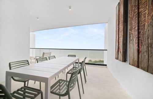 You’ll find two TV areas—one facing the ocean—a dining room, a breakfast bar, and a fully-equipped kitchen with all the appliances you could need. On the gorgeous balcony, there’s a dining area and a big lounge for relaxing.