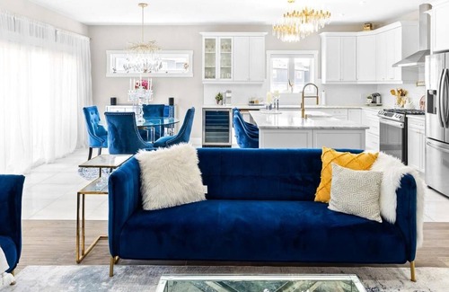 Our home boasts a modern kitchen equipped with high-end appliances, granite countertops, and a convenient pot filler, perfect for cooking enthusiasts. Relax by fireplaces in the open-concept living spaces or unwind in the inviting bedrooms with plush linens and thoughtful touches. The large backyard is perfect for morning coffee, evening wine, or family gatherings under the stars. Enjoy high-speed Wi-Fi, central air conditioning, a washer/dryer, private parking, and more to make your stay effortless.
