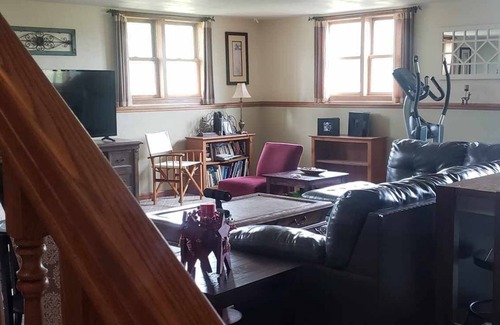 Spacious 4-bedroom with AC, fitness room, WiFi and manmade pond in Oshkosh. | House in Oshkosh
