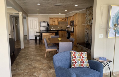 2 Kings and 2 Queens beds for less than a hotel. Nestled in an established and safe neighborhood--close to so many things, this 4 bedroom, 3 bath home provides comfort and relaxation. Bright, open living spaces are furnished with a contemporary style and flare. The kitchen features a central island with barstools and a beautiful modern table. Three bathrooms have been updated for elegance and uniqueness and each of the four bedrooms provide everyone with plenty of privacy. FAST WIFI!.