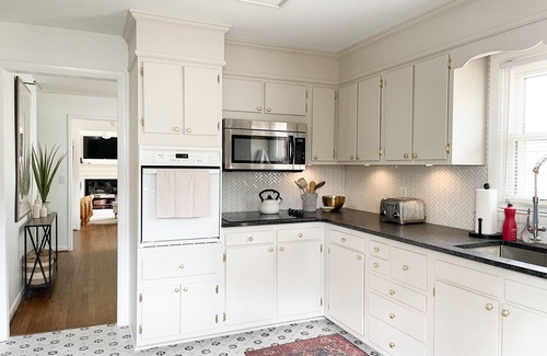 Come enjoy this newly renovated, professionally designed home with almost 3000 square feet of living space spread out over 2 floors. This 4 bedroom, 2.5 bathroom home was lovingly remodeled top to bottom for guests to feel right at home, yet experience something perhaps out of the pages of a magazine. This home is in a beautiful established neighborhood that is super convenient to everything. It is less than one mile from Friendly Center, 9 min to PTI airport, 9 min to downtown Greensboro.