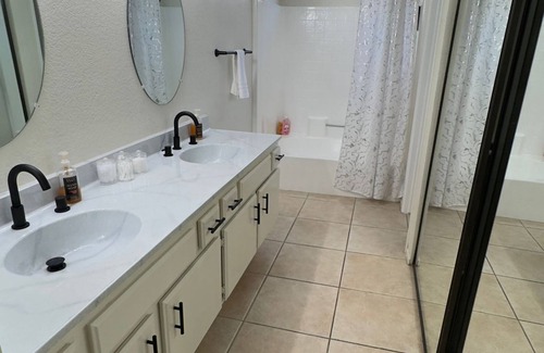 The hall bathroom is shared. Please spray and rinse out the shower after each use. Cleaning supplies are available under the bathroom sink. Please do not use the toilet as a trash receptacle. No wipes, facial tissues, feminine products, etc should be flushed. Trash cans are provided for such products.