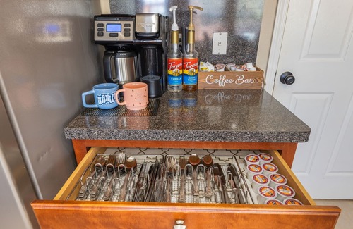 Cook up a storm with all the amenities you need in this fully equipped kitchen. Whether it's a quick breakfast or a family feast, enjoy effortless cooking with top-tier appliances. Plus, our unique drink station with a bring/take coffee mug concept adds a personal touch to your morning brew.