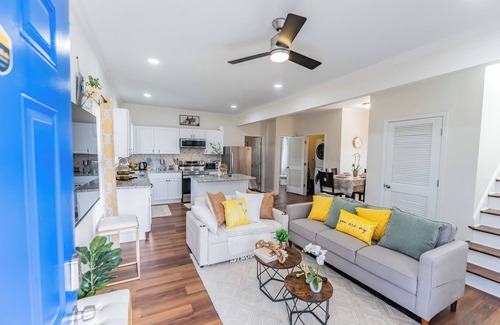 Whether you're gathering with family, catching a concert, exploring the city, or just looking to unwind, this home blends modern amenities with Southern charm. From the arcade machine and board games to the bloom-filled yard and pet-friendly vibe, you’ll find everything you need for a memorable stay.