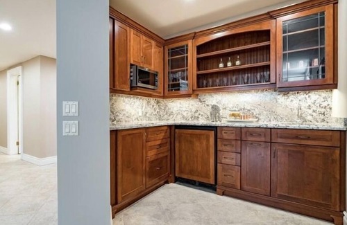 30 day rental required. Escape to this beautiful home at the foot of Blue Mountain Ski Resort. A spacious very large main floor living room will welcome you with a cozy gas fireplace and large 75” TV. The large dining room seats 10 and there’s an island with stools for added seating. This wonderful retreat is perfect for large families and cozy enough for just a few. You'll find all the essentials and a beautiful custom kitchen with granite counters, 2 sinks, 2 dishwashers and 2 ovens. The ceramic floors are heated. The primary bedroom has a luxurious ensuite with a large deep tub and a shower with all the spray options. Upstairs are 2 large bedrooms with kings and another large custom tiled bathroom. There’s also a cozy reading nook overlooking the living area below. Downstairs you’ll find a second living room with a ping pong table and wet bar, a large full bath and the 5th bath listed is actually a luxurious steam shower room for your enjoyment after a long day on the hills. The 3 bedrooms downstairs each have 2 queens in them. Kickback, relax, and enjoy everything Collingwood and our home has to offer. When you walk out the backyard and across the street the southern ski lift is less than 150 metres away. In the other direction is Blue Mountain Resort’s pedestrian “Village” and just a 5 minute walk, with all of its restaurants, shops and entertainment. We often walk to the “plunge” pool there with the kids for a fun afternoon. The backyard has a cozy covered porch and a large lawn facing the hill. There’s a bbq and a firepit for cozy evening fires. There is garage parking for one car and room for 5 more vehicles in the driveway. There is also lots of room for your coats, boots, skis and gear. A washer and dryer, too. Minimum 30 day rental required. Please see the calendar for availability