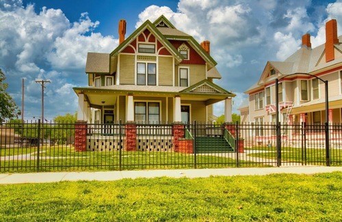 Welcome to the Purdue House. This charming 140 year old historic house, built by the founder of Purdue University, is centrally located in Wichita. This amazing property boasts 7 bedrooms with a mix of 3 queen beds and 4 king beds. Guests can enjoy the convenience of WiFi, HVAC, a washer and dryer, iron, and a newly remodeled kitchen. The 5 bathrooms feature a bathtub for added relaxation. Kickback, relax, and enjoy everything Wichita and our house has to offer.
