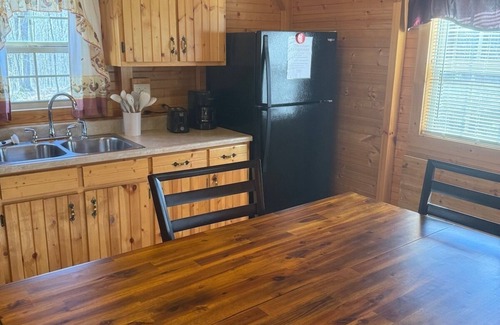 Spacious 740 sq ft Cabin w/Deck, Fire Pit & Disc Golf — Mins from Mammoth Cave is located in Mammoth Cave. Spacious 740 sq ft Cabin w/Deck, Fire Pit & Disc Golf — Mins from Mammoth Cave provides accommodation, featuring Parking, View, Ocean View, among other amenities. This Cabin features Parking, View, Ocean View, to make your stay a comfortable one.