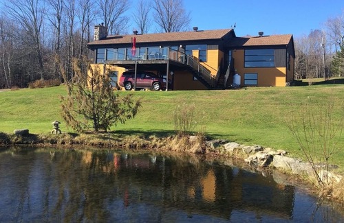 Nearby: lake, river, hiking trails, ski resorts, 2.5 km from Mansonville with all amenities. You will appreciate my accommodation for its VIEW (south QUebec and Vermont VT), its large indoor and outdoor spaces, its calm, its swimming pool, its sauna and Nature!
