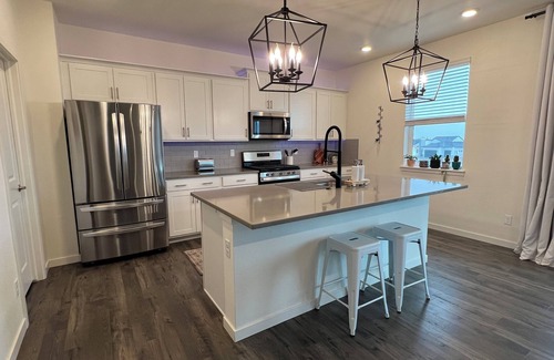 Get ready to relax in this 4-bedroom house in Colorado Springs. This welcoming property features 2 queen beds, 1 full bed, and 1 twin bed, perfect for families or groups of friends. With 3 bathrooms equipped with a shower, bathtub, and hair dryer, guests will feel right at home. The house also offers amenities like AC, a washing machine, iron, WiFi, heating, garage, utilities and more. We think our place will help you experience everything Colorado Springs has to offer.