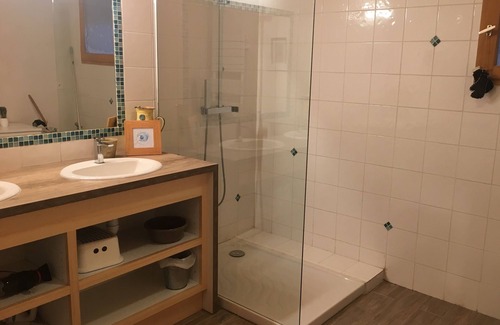 About 70 m2. Two large bedrooms with duvets and pillows. Large shower room with double sinks, shower 120, towel dryer, hair dryer.