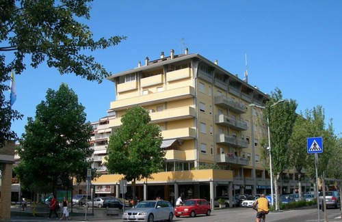 Two-bedroom apartment for up to seven guests, located on the 5th floor of a building with an elevator, just 410mt from the beach. The property is composed of a living room with a single sofa bed, a fully equipped kitchen, two spacious bedrooms with a double bed plus a single bed, a full bathroom with a shower box and washing machine. It features a large balcony, and one uncovered parking space is included. A/C is available at an additional cost (check below).