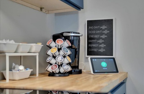 You have access to a fully equipped kitchen, featuring an electric stove, oven, refrigerator, dishwasher, a Keurig coffee maker (perfect to brew your complimentary cup of Joe, tea or hot chocolate!) and microwave. The kitchen includes everything needed for your culinary creations such as pots, pans, knives, utensils, plates, bowls etc.