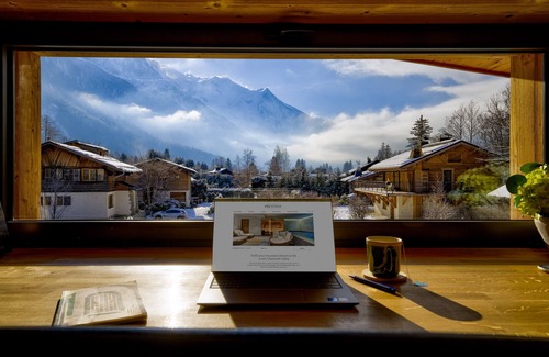 - Impressive open plan living area with glass doors onto terrace giving outdoor dining space with beautiful views of the Mont Blanc range