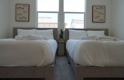 This stunning oasis boasts 3 bedrooms, each thoughtfully appointed to ensure a restful night's sleep with blackout blinds. With a total of 4 queen size beds, our home comfortably accommodates up to 8 guests. Enjoy 2 full bathrooms including a luxurious bidet, a stylish living room with a blend of modern furniture, a spacious outdoor area for relaxation, washer/dryer, state-of-the-art reverse osmosis water filtering system, central AC, and a fully-equipped kitchen with appliances /utensils. Treat yourself to upscale living and create unforgettable memories in this exquisite haven!