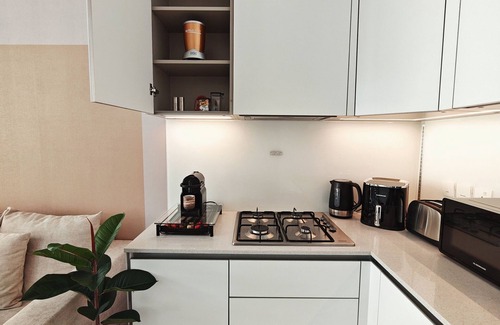 - Fully equipped kitchen, complimentary water, tea, sugar,& espresso coffee.