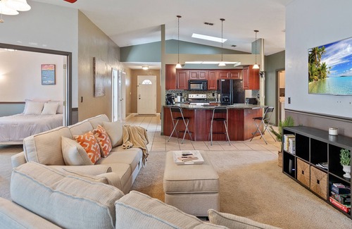 This spacious, open-concept home is perfect for families, small groups, and kids of all ages. With 3 comfortable bedrooms, 2 bathrooms, and plenty of seating and space it's the perfect place for entertaining or just staying in and relaxing. Come get away to beautiful Daytona Beach!