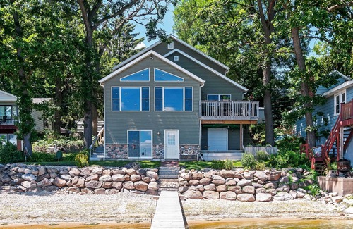 Endless lake activities and fun in the sun will be right at your fingertips at this beautiful waterfront vacation rental. Featuring 3 bedrooms, 3 bathrooms, and ample living space, this hideaway offers plenty of room for your next family vacation. Situated on the shore of Lake Koshkonong, one of Wisconsin's largest recreational lakes, this home offers serene views, a private beach, and a dock for travelers wanting to bring their boat to enjoy fishing, jet skiing, and family bonding on the lake.