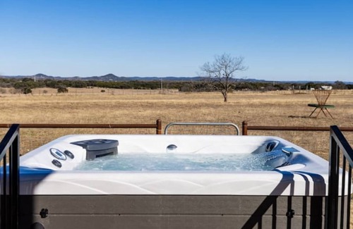 The Farmer's Daughter is situated on 30acres with views of the Texas Hill Country from the front porch and hot tub which at night you can gaze at the star filled sky. Big open floor plan with so spacious everyone can be together whether cooking, dinning or relaxing. Back patio where you can enjoy BBQing, playing corn hole or watch the owner's Horses and Longhorns grazing. 4 miles from Downtown Bandera "Cowboy Capital of The World" there are accommodations so you can bring your horses too! ( $25 per horse per night)