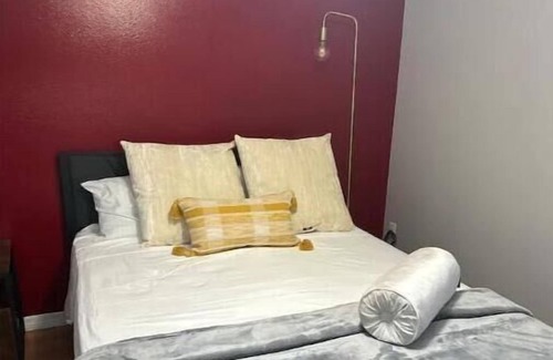 Bedroom 2 has adjustable queen bed with remote. A side table that has a blue sensor light that turns on when you walk into the room, as well as awireless charger and USB port, also has closet in room.