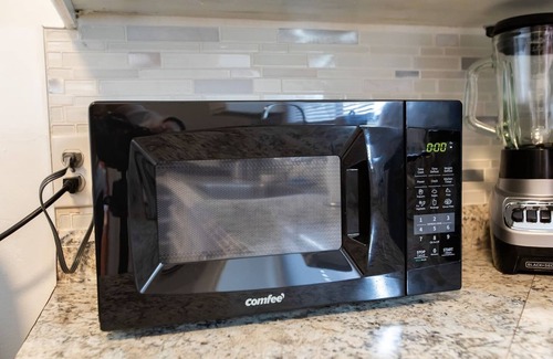 Our kitchen boasts modern appliances and is stocked with all essentials, including pots, pans, dishes, utensils, coffee, tea, creamer and more.