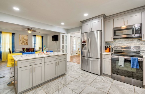 Spend your next Atlanta-area getaway staying in style at this East Point vacation rental. With a spacious interior, private pool, and convenient location just a short drive from Hartsfield-Jackson and Mercedes-Benz Stadium, this 5-bedroom, 3.5-bath house has everything needed for a fun-filled stay. Tour the Georgia Aquarium, visit Six Flags, or check out the Battery before heading home to relax around the fire pit.