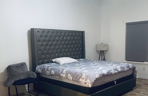 This private spacious master suite is perfect for family, business, and solo trips and has a keypad entry. Roku TV, mini fridge, microwave, dining table, standing shower, bathtub, two sinks in the bathroom, and free (wifi, EV charger, Laundry, gym available).Pet friendly, and Near shopping, park, and church. Located in a quiet and safe community. Near Freeways ( 99, I5, 58,178).