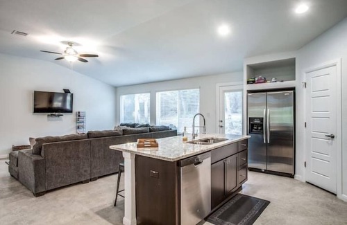 Beautiful, new one-story private retreat in beautiful Lago Vista. Located minutes from Lake Travis, this home boasts great natural light with a sprawling backyard, great for kids to run around and explore. The open floor plan is perfect for family gatherings, with lots of room for guests to relax. Kitchen is fully equipped with everything you need. No smoking. No pets. Wifi is available!!