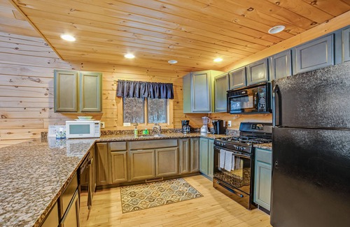 This hillside log home boasts fantastic views of Schroon Lake and peak views of Pharaoh Mountain, and it also offers shared beach and dock access! Three levels of open living space will accommodate your whole group, and outside you'll have a campfire area and room to park six cars. Inside, the main floor has a great room with plenty of comfortable seating, a full kitchen with granite countertops, a casual dining area, and two bedrooms. The upper level has a private main suite with a sitting area, and there's an open loft space that overlooks the main level. Downstairs, you'll find a family room with a bunk bed and a TV, plus the last bedrooms.
