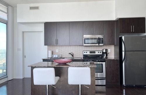 Welcome to our luxury condo located on one of the higher floors of the building. Situated centrally, in an ideal location for visitors to Toronto. We would love to host you.