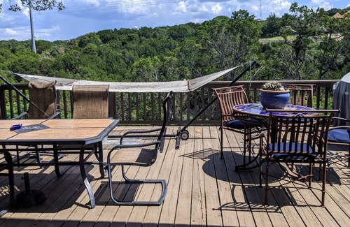 Canyonview backs to a lush green canyon, offering stunning Hill Country sunsets and the serene sounds of nature. Well behaved dogs are welcome for an additional fee. The home is not childproofed, so we do not recommend this property for children under 5 years.