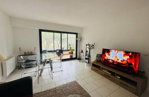 Spacious Mougins apartment is located in Mougins. Spacious Mougins apartment provides accommodation, featuring TV, Security/Safety, Internet, among other amenities. This Apartment features TV, Security/Safety, Internet, to make your stay a comfortable one.