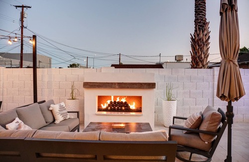 Escape to this stunning vacation rental set with a breathtaking outdoor space, including a heated pool, dining area with bistro lights, as well as a fireplace for those chilly Phoenix nights. Outdoor games and double hammock. The inside is spacious and open. Includes a large 85" TV in the main living area, gorgeous kitchen with all the cooking gadgets, and a bonus entry room with additional TV. The house is fully stocked with amenities and board games. Added bonus: office/guest room w/ monitor included for those days you need to get some work done. Centrally located to Downtown Phoenix, Scottsdale, Arcadia, Biltmore.