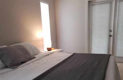 Our 2 bedroom, 2.5 bath pool home sits on an acre of nature-filled woodlands. The master bedroom has a 55" flat screen smart tv, king-size bed, and ensuite bathroom with separate tub and shower. Bedroom # 2 features a queen size bed and workspace with desk and an office chair.