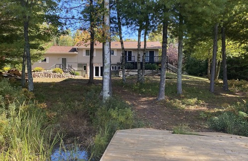 Relax in our 4 bedroom, 3 bathroom Bi-Level Lake house retreat. House is located on a 5-Lake Chain in Sugar Camp, WI. It sits on nearly two acres at the end of a dead end road. Upstairs: enjoy a Living room, fireplace, full kitchen with island and dining table. Master bedroom with King size bed and full master bath. Second Bedroom with Queen bed, across from a full bathroom. Downstairs includes 2 additional bedrooms, 1 full bathroom, family room and bar. Doors open to outside firepit and breathtaking views of the lake channel. Electric is run out to the Pier and can park up to 2 boats. Pick up Snowmobile trails just across the lake. Home is nestled close to several area attractions. Approx. 15min to Eagle River, Rhinelander and St Germain.