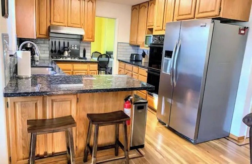 The main floor also has a laundry room with washer and dryer setup, as well as a large dining area that can comfortable seat up to 10 people. A half bathroom is also available downstairs as well as a completely updated kitchen with everything you might need to cook a meal for your group.