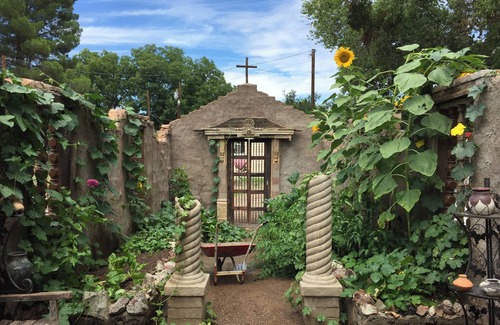 This spacious queen room in a historic small hotel features Asian art, antiques, and an optional twin bed if needed. Situated on a protected side of the second floor, the Sweetheart Room is the deluxe offering of the 1914 Simpson Hotel on Main Street in Duncan, Arizona, a town of 700 on the Gila River, reachable by scenic highways AZ 70 or AZ 75. Duncan is central to BLM Wilderness Study Areas, abandoned mining districts, notable rockhound and birding sites, and lovely, relaxing rural drives. Our hotel gardens surround the building and offer many quiet and shady seating areas for birdwatching or reading or just quiet reflection. The Sweetheart’s bathroom features a huge clawfoot tub with hand-held shower. We have wireless internet (no television) and an extensive hotel library to browse and borrow from during your stay. Room includes fridge, microwave, coffee maker (and fresh-ground organic coffee), hair dryer, handcrafted soaps, and quality shampoo and conditioner. If you like, add a gourmet vegetarian breakfast for $20 plus tax per person (children 12 and under $10), or walk down the highway for local cowboy and Mexican dishes.