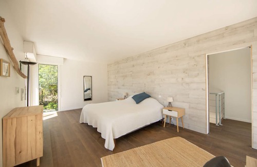 From Villa des Pins, a small gate at the bottom of the garden provides easy access on foot to the ocean beaches or the Port de la Vigne in just a few minutes. The journey takes you through the calm of the pine forest. You're also less than 10 minutes by bike from the charming oyster-farming village of L'Herbe.