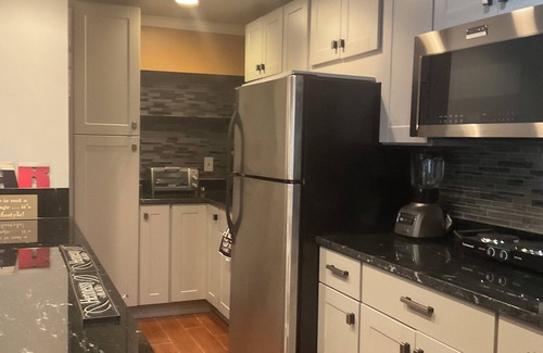 This beautifully spacious lower level apartment offers over 1,700 square feet of living space, providing comfort and convenience. Recently upgraded kitchen, bathroom, laundry room with combo washer/dryer and plenty of folding and shelf space. This rental has two well-appointed bedrooms designed to meet all your needs. The first bedroom boasts a king-sized bed, a regular closet, two nightstands, a dresser, and cable TV, creating a relaxing retreat. The second bedroom includes a double-sized (full) bed, a custom closet, two nightstands, a dresser, and a TV, perfect for guests or roommates. Also two airbeds available (King/Queen). The bathroom in the common area features an upgraded glass barn-door Spa and Rain Shower and single vanity. Towels included.