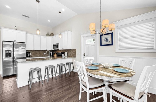 At Ocean Breeze, you will find spacious accommodations for eight guests. Whether it’s your annual family vacation or a trip to the beach with friends, this home fits right into your plans. Decorated with beach-themed decor and plenty of at-home comforts, all that’s missing is you! Each room is unique in its own wonderful way and has enough privacy for all. Enjoy a home-cooked meal in the fully-equipped kitchen or fire up the gas grill and show off your skills. Feeling competitive? Challenge your party to a friendly game of foosball. The rec room is perfect for lounging as it is equipped with a flat-screen TV and a couch.