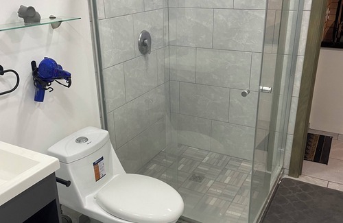 While you're here, you can enjoy all the comforts of home and more, including WiFi and air conditioning, as well as a dryer and an ironing board. Other amenities include towels, soap, toilet paper, and a hair dryer.
