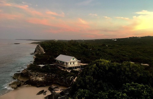 ShoreBreak cottage rises 25’ above the ocean on a dramatic cliff above perhaps one of the most beautiful beaches on Eleuthera known to locals as "Secret Beach". ShoreBreak cottage and Secret Beach are located on the Atlantic coastline of Eleuthera, 25 minutes from N. Eleuthera Airport (ELH) The quaint and authentically Bahamian Gregory Town is 2 miles to the North. All of the photos on this listing have been taken at ShoreBreak cottage and the “secret beach” below. Secret beach can only be accessed by Shorebreak and our new smaller neighboring property ShoreTing. Both houses can be rented together or independently. We don’t block access to secret beach. Life at ShoreBreak cottage is like taking a step back in time. You can plan a busy day of activities and experience the thrill of diving, snorkeling, fishing, surfing, and kayaking. Or for nature lovers, bring your Audubon nature guide book, take a walk and search for numerous varieties of butterflies and birds. Or better yet, you can choose to do nothing at all. Kick back, relax, and read a book and doze off in the afternoon with the symphony of the Atlantic lapping on the crystalline beach below. ShoreBreak cottage was created to be harmonious and respectful to its natural, untouched and exquisite surroundings. The vision for ShoreBreak was to embrace nature at its fullest and to escape the trappings of the modern world. No Television, no computer, no problem. (WiFi is available and cell phone and internet service access via international roaming).Nightly entertainment is courtesy of the Galaxy above. At ShoreBreak you enjoy quiet nights and fall asleep to the chorus of the ocean below only to dream of catching the Sunrise in the morning. Kiss the sky, smell the salt, and soak up the warmth of the sun on ShoreBreak’s oceanfront porch and deck. Just below our deck, walk down a short flight of a dozen stairs to find large boulders and unexplored caves. Direct access to this beach is limited to ShoreBreak cottage and our sister property “ShoreTing” and both properties can be rented together if available. The beach takes a shape and life of its own and consistently shifts, expands and retracts with the tide, wind and lunar cycles. We have seen the beach literally come and go for days at a time. This is the ocean and it always changes. It can be rough at times and no lifeguard on duty so one must exercise caution. And don’t forget to enjoy our outdoor shower if just for a quick rinse after coming up from the beach. ShoreBreak was built in a traditional and cozy Bahamanian style by a 3rd generation local builder who took great pride in his craft. The vernacular based outpost takes its design cues from the older gabled wood cottages on Harbour Island. White washed locally sourced cypress wraps the interior and creates a warm feel. The build was overseen by an internationally renown architect to ensure aesthetic integrity was true to form. A central living space is bookended by 2 ocean front bedrooms each with a queen bed. Both bedrooms have their own private en suite bathroom. A soaring vaulted ceiling with 2 lofts. PLEASE NOTE - the lofts are used for storage and not part of the rental, only the down stairs 2 bedrooms. ShoreBreak is ideal for 2 couples or just a honeymoon for 2. The cottage is a bit reminiscent of a wooden ship and was built in the spirit of the sea, adventure, exploration and the frontier. It boasts beautiful re-purposed mahogany yacht doors and brass hardware in the bedrooms as well as portholes salvaged from a pre war passenger liner. All of the sliding doors facing the ocean were sourced from a resort in the FL Keys that no longer stands. Secret Beach is a treasure and ShoreBreak was built to be sensitive and have as minimal an impact on its natural surroundings as possible. It has the ability to alternate between both grid and solar power making it fully self sustainable. The cottage was designed to take advantage of the cooling ocean breezes, but also offers modern comforts such as AC which is in the bedrooms. We ask our guests to always be mindful of their energy consumption and water usage and to leave as minimal a footprint as possible. ShoreBreak is provisioned with your basic needs, bed sheets, towels, utensils, cooking amenities, a built in gas cooktop, full sized refrigerator, and a dining table. Or use the Weber grill and grill up some fresh lobster tails from your dive and dine al fresco on the ocean deck under the stars. Or have a local fisherman bring you the days catch. You are sure to become friendly with the beautiful and simple people that call the island home. ShoreBreak is the essence of the authentic Bahamian out island experience. This is not a resort experience. No umbrella drinks. Its a bit of living on the edge of the rugged, natural and beautiful terrain. The ocean below can be tumultuous, so use extreme caution. Thus the namesake ShoreBreak. With this said, children are not recommended unless always supervised and all guests are reminded to exercise extreme caution on the property and beach below. ShoreBreak seeks adventure travelers, star gazers, beach combers and romantics at heart. Enjoy!