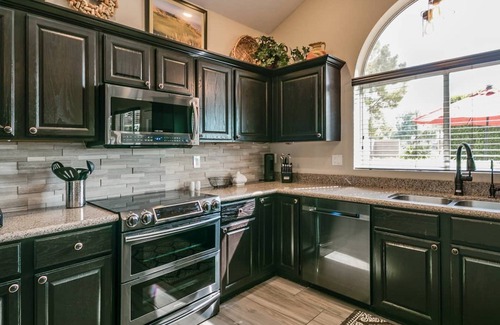 This place feels like a home and not a vacation rental. A great deal of thought and effort has been put into making this one of the East Valley's Top Vacation Homes. Tastefully furnished with unique pieces to add some flair and plenty of comfortable spaces to be in. Fully equipped kitchen with all that you need for the cook in the group. Spacious Living Area with seating for the whole family. Play a game of poker or shoot a game of bumper pool in the game room. Escape to the loft which has a sectional sofa to watch the big game or enjoy a late night movie. Loft also features a desk and work space for the business traveler. Bedrooms are all good sized and have comfortable beds and top of the line bedding. Master retreat is spacious and features a work space along with a luxurious master bath. Upstairs off the loft you will find a large patio to enjoy the golf course and mountain views. Smart TVs in all bedrooms and four additional tvs for your streaming enjoyment.