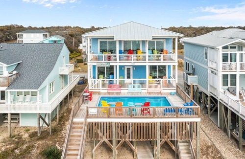 If you're seeking pure oceanfront luxury with incredible relaxing vibes near the Oak Island Pier, you've found it at Monkey Pants! This astonishing 6 bedroom, 5 bathroom oceanfront vacation home on Oak Island will literally take your breath away from the moment you pull up. Highlights include an elevated pool with stunning ocean views, two balconies overlooking the sandy shore, private beach access, an elevator, and more amenities than we can begin to describe! Plus, you're right down the road from popular seaside restaurants like Koko Cabana and Lazy Turtle Bar & Grill.